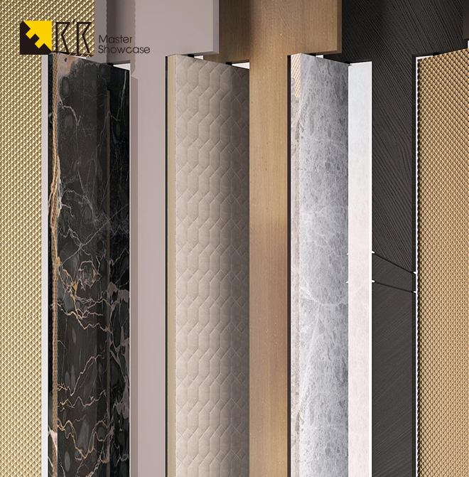 Marble, brass, stone, wood are precious tesserae of a mosaic that unveils itself to surprise. The Empire screen reveals its three-dimensionality emphasizing the value of materials. The engravings on the stone, the smooth surface of the marble, the knurling of the metal and the many nuances of the wood o er alternation and contrast to the eye and to the touch, giving absolute distinction to a complement that furnishes and lls the space.